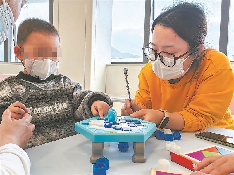 “看草莓组织的活动,我渐渐明白要怎么和孩子玩。”梓霖妈妈说,之前孩子只要哭闹,她只会用手机放动画片哄,“现在,我会耐心地陪着孩子玩益智玩具,在亲子互动中,帮助孩子纾解紧张情绪,提高手眼协调能力”。