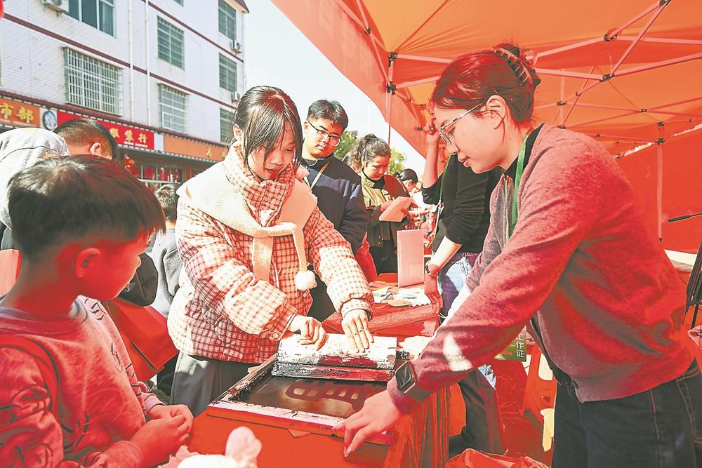 活动现场,展现我省优秀传统文化的服务点吸引不少群众驻足。中都镇是中国民间文化艺术之乡、中华诗教单位,文化氛围浓厚也成了今年“三下乡”活动的显著特点。