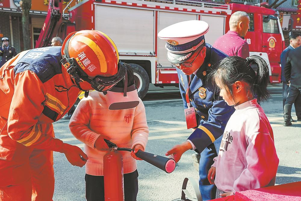 消防员指导群众使用VR设备体验模拟灭火。(龙岩市消防救援支队供图)