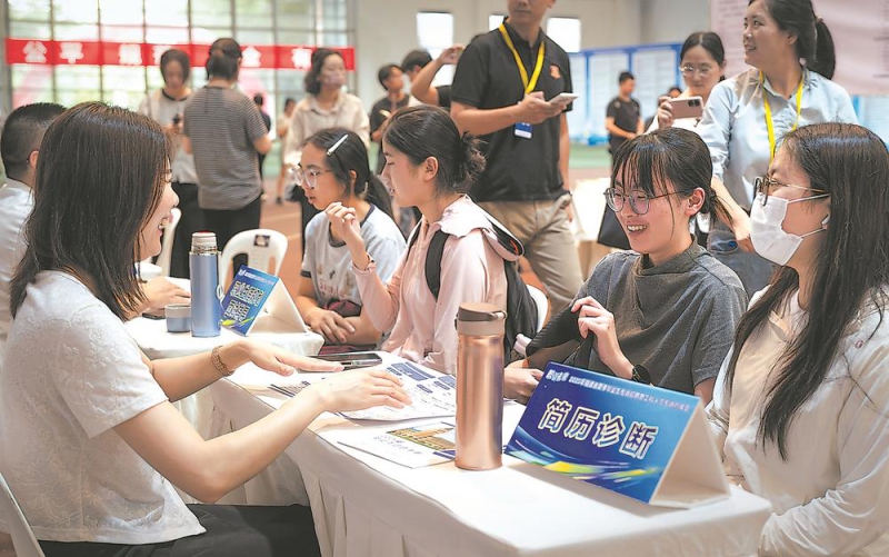 17日下午,由省人社厅、教育厅、工商联、中国海峡人才市场等单位联合举办的“职引未来——2025年福建省夏季毕业生专场招聘会”在福建师范大学举行。本场招聘会共有教育单位、各类企业等250余家单位参加,提供各类岗位740余个,需求人数超5000余人。