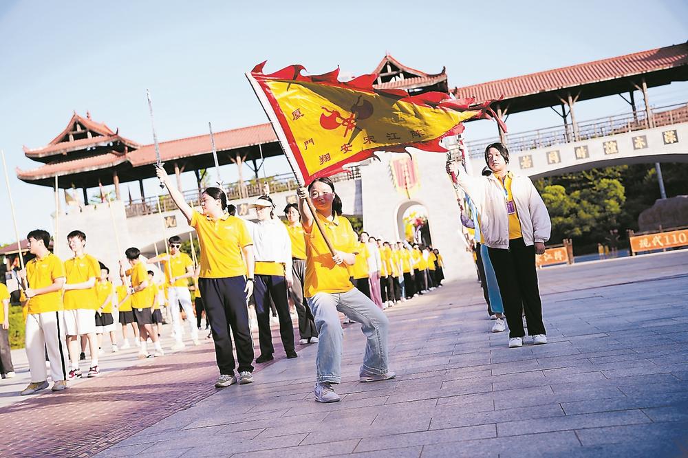 16日,第十四届海峡两岸中学生闽南文化夏令营在厦门开营。来自海峡两岸的师生约140人参加了开营式。本次夏令营为期5天,营员们将参加丰富多彩的闽南文化活动。据悉,本次活动旨在通过观察走访、文化课程、考察研究来提高两岸学生对闽南文化的认识,增强两岸青少年的文化认同,让两岸炎黄子孙情缘更加深厚。(记者 邱赵胤 摄)