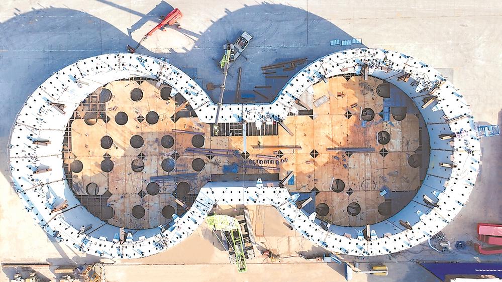 近日,随着最后一段100吨节段精准就位,厦金大桥(厦门段)项目刘五店航道桥东主塔防撞套箱加工完成,将于月底通过大型船舶拖带至施工现场,分次吊装精准定位至东主塔桩基外。