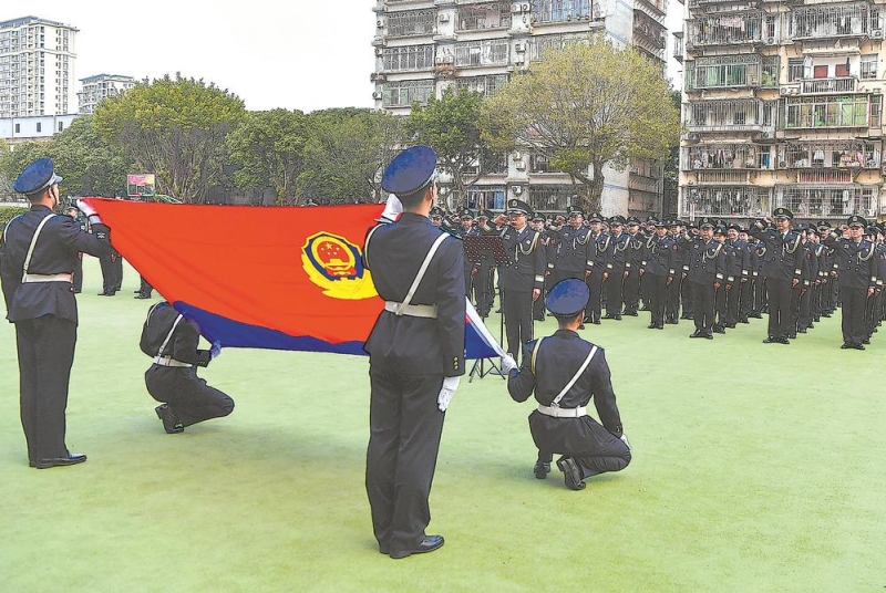 9日,在第五个中国人民警察节即将到来之际,福建省司法警察训练总队在福州举办庆祝活动,通过升警旗、重温入警誓词、颁发从警30年荣誉证书等方式,进一步激发全体民警的职业荣誉感和使命感。(林巍 游庆辉 摄影报道)