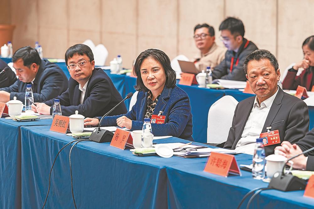 13日,省人大代表就如何通过共建研发平台、共享创新资源等方式,促进科技创新成果向现实生产力转化发表自己的建议。(记者 游庆辉 摄)
