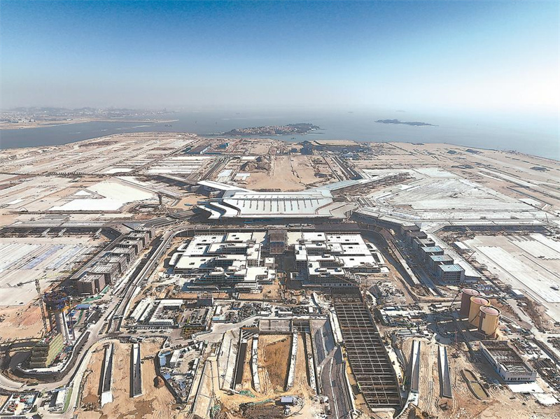 连日来,厦门翔安机场航站楼工程加紧施工。机场预计2026年底正式通航,建成后将成为我国重要的国际性枢纽机场之一。(记者 王毅 通讯员 柯雅莉 摄)