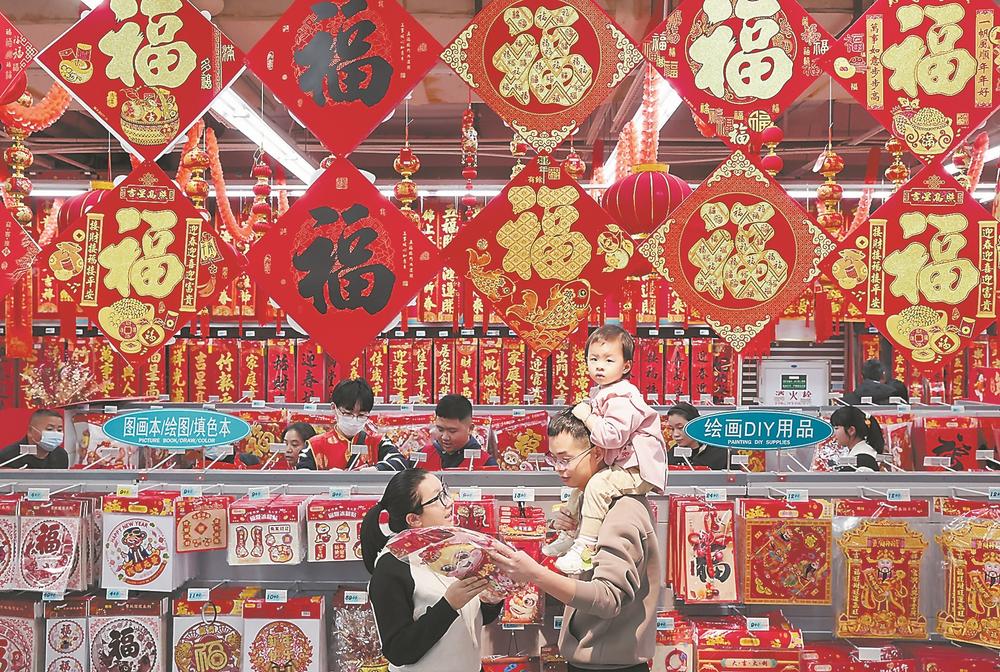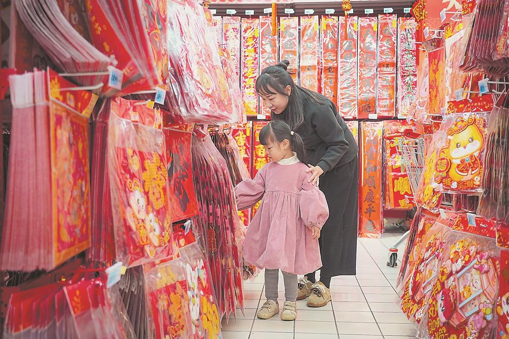 喜迎新春,我省各地年货市场供销两旺。图为近日,市民在泉州市洛江区一家商超卖场选购年货。(张九强 摄)