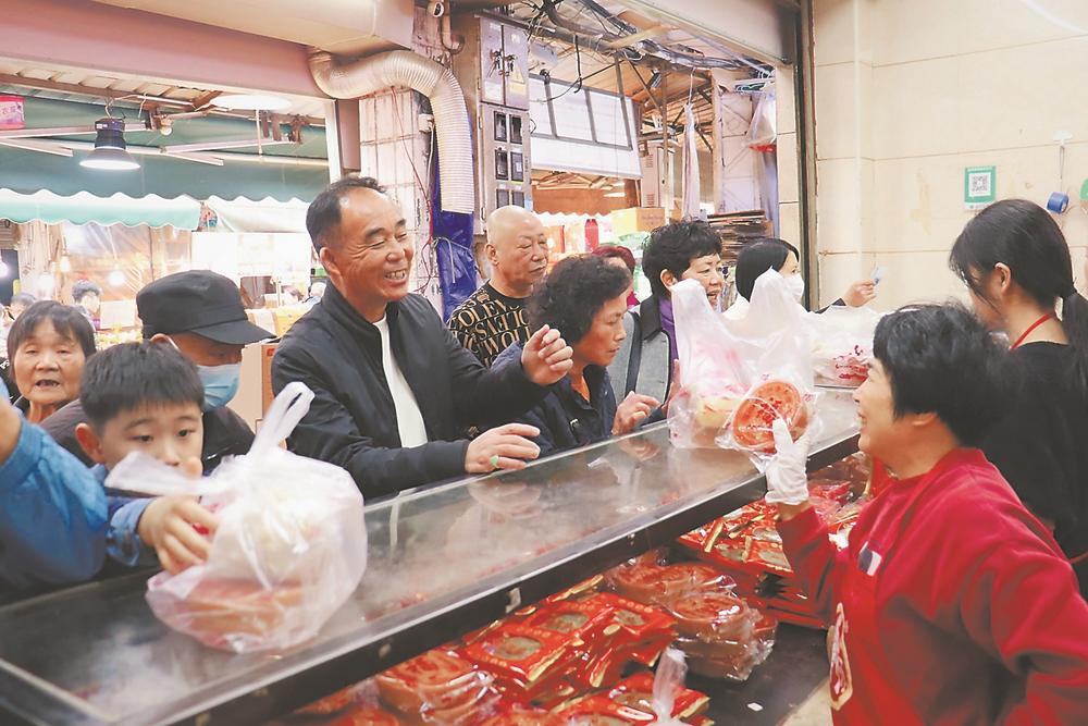 连日来,龙岩市中心城区中山街的年货大集热闹非凡,琳琅满目的商品让人目不暇接,彰显了春节市场的消费活力。图为市民在采购年货。(记者 戴敏 通讯员 章宸睿 温连光 摄)