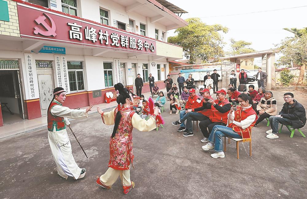 日前,福建省文化志愿者协会联合永春县文化体育和旅游局邀请该县高甲戏艺术保护传承中心的演员在蓬壶镇高峰村举行“文化惠民,送戏下乡”迎新年活动。(通讯员 丰晓飞 记者 施辰静 摄)