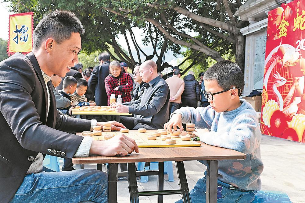 1月31日,尤溪县朱子文化园,尤溪县春节象棋赛在此举行。比赛分为擂台赛、名家表演赛及车轮战,吸引了各年龄段群众热情参赛。(记者 游庆辉通讯员 吴振湖 摄)