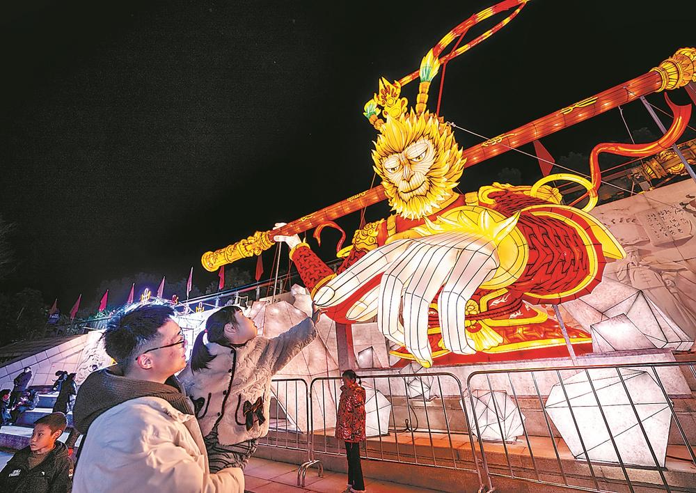 春节期间,在福州马尾琅岐红光湖公园举办的第二十三届“两马同春闹元宵”灯会吸引了众多市民游客。“两马同春闹元宵”2008年被列入国家级非物质文化遗产名录。今年的灯会分为“闽在海中”“向海图强”“扬帆四海”“永佑海疆”“左海风物”“星辰大海”六大主题片区,集中展示了福建海洋文化、“两马”民俗文化、船政文化和闽台文化。(记者 施辰静 摄)