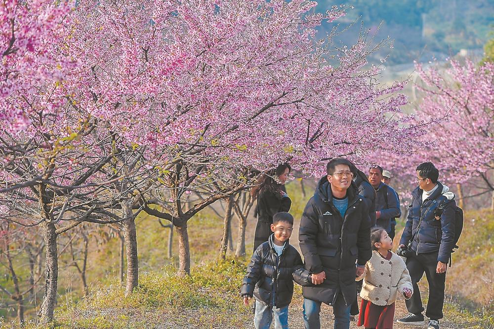 近日,在罗源县松山镇北山村的罗源湾樱花园,“河津樱”进入盛花期。自大年初一以来,景区已接待1.5万余名游客。