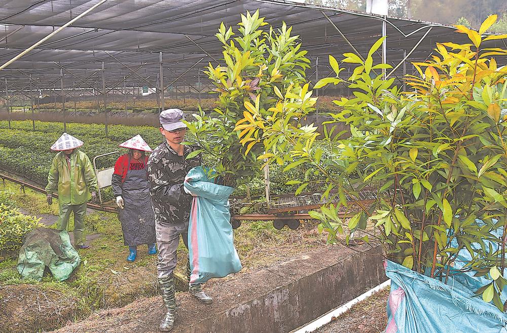 18日,在沙县官庄国有林场省级保障性苗圃,工人正忙着整理苗木,准备外运。