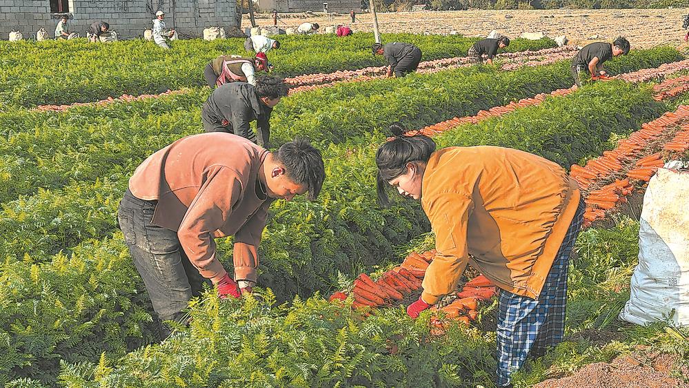 仲春时节,胡萝卜迎来丰收季。近日,在莆田市荔城区北高镇汀峰村胡萝卜种植基地,数十名工人忙着采收装运胡萝卜(如图)。这些新鲜胡萝卜将采用冷链物流海运等方式发往海外,出口至日本、俄罗斯、马来西亚等国家和地区。
