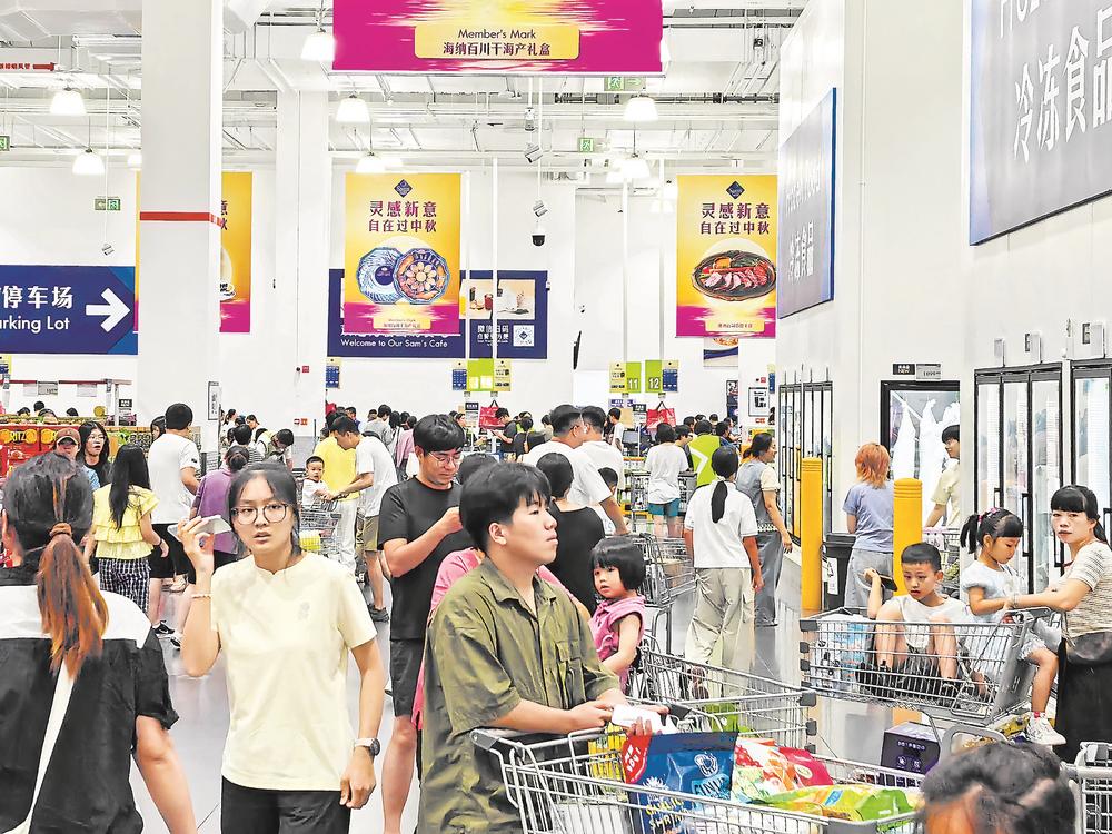国庆中秋假期,我省各地各大超市人潮涌动,节日消费热情持续高涨。图为晋江一家超市里,市民在挑选商品。(记者 王毅 摄)