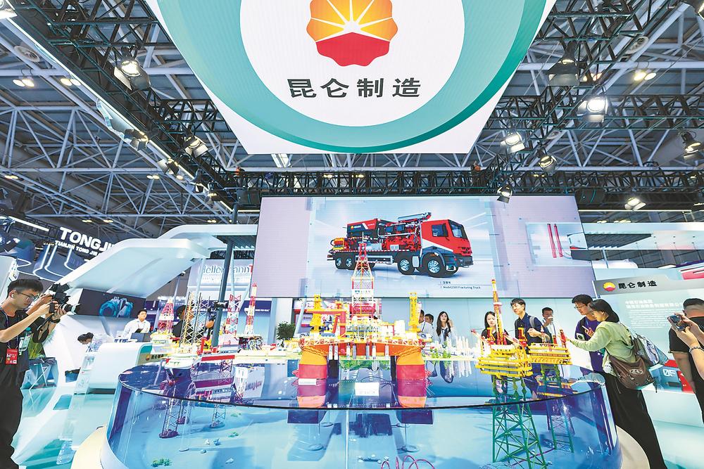 中国石油集团昆仑制造有限公司集中展示了高端海工装备、绿色能源开发装备等前沿内容。(记者 施辰静 摄)