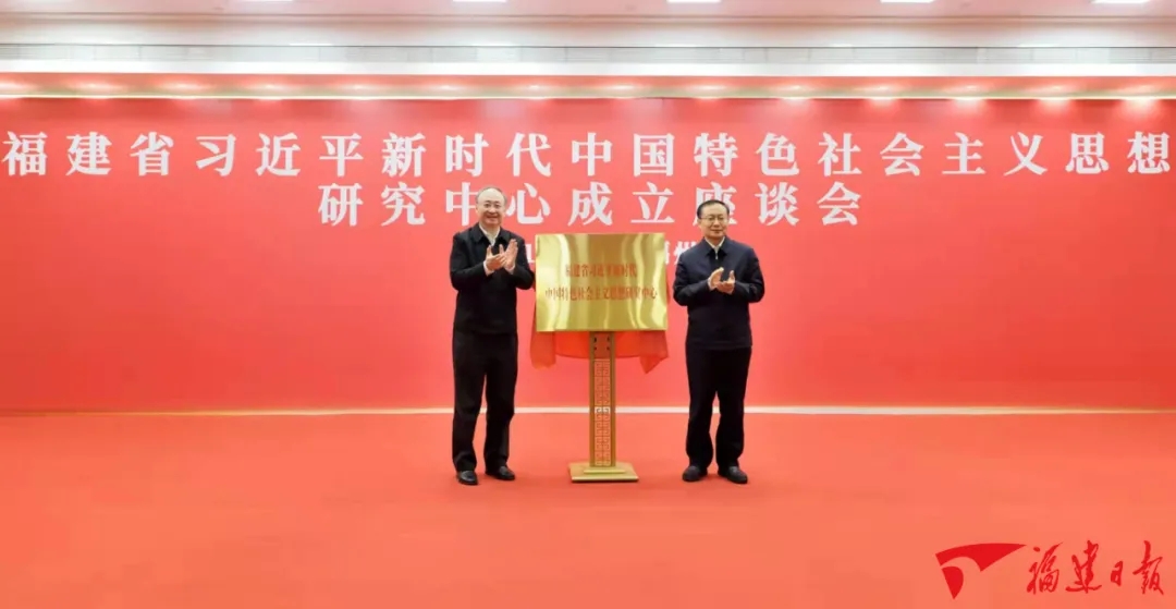 随后,省委常委同志集体出席福建省习近平新时代中国特色社会主义思想研究中心揭牌仪式和座谈会。尹力、孙业礼共同为研究中心揭牌并为学术委员会委员代表颁发聘书。