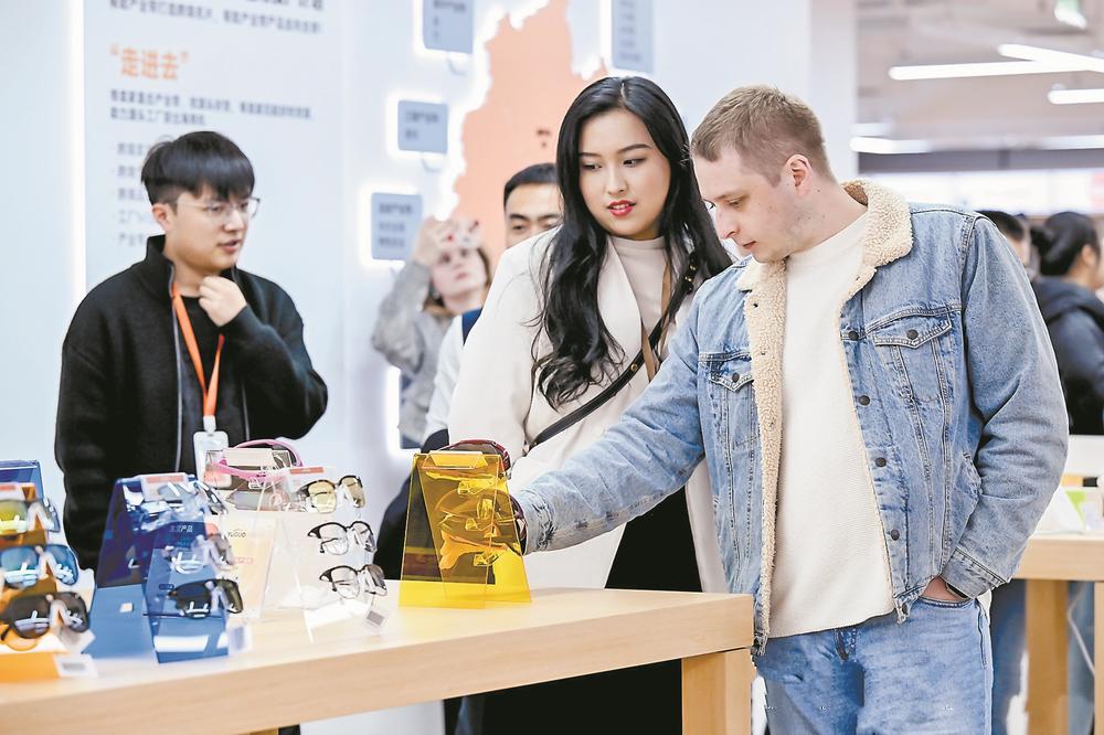雨果跨境全球选品中心厦门馆内,来自世界各地的游客在挑选商品。记者 林闻 摄