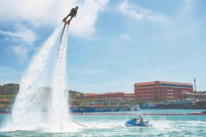 平潭22号国际游艇码头的水上飞人表演。江信恒 摄