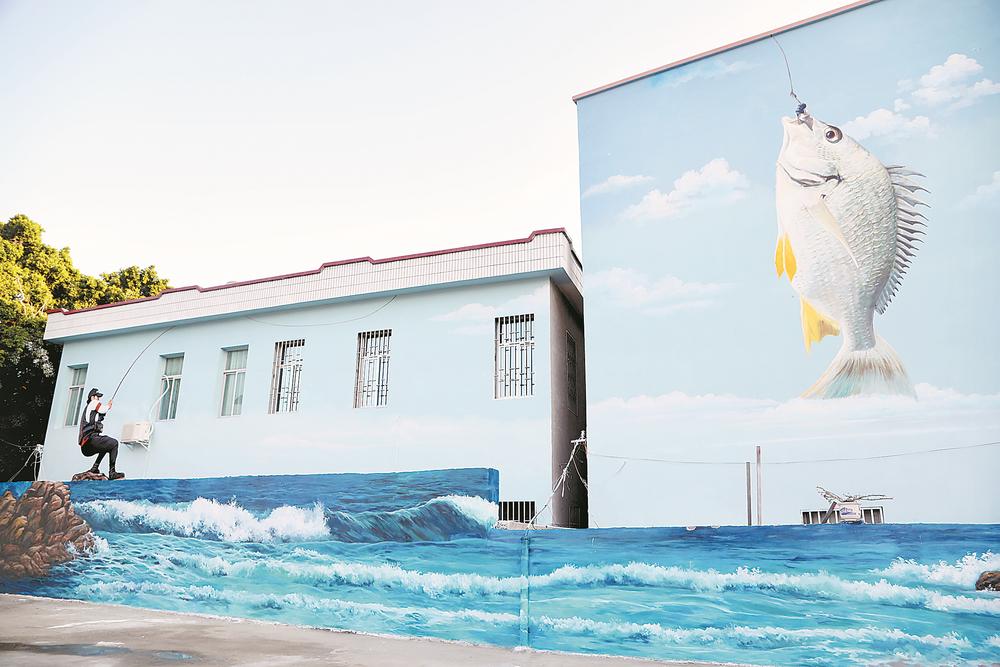 这种“渔村晨曦”的景象被画家绘在顶上村118街区民房上,成为一道海味十足的风景线。