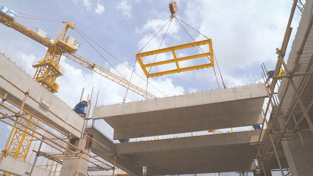 日前,在福建惠芯人工智能智造产业园项目二期举行的装配式建筑免模免支撑技术观摩现场,只见施工人员熟练操作吊装设备,将预制构件精确地放置在预定位置,7.5吨的楼板仅用6分钟便安装完毕,大大缩短了施工周期。