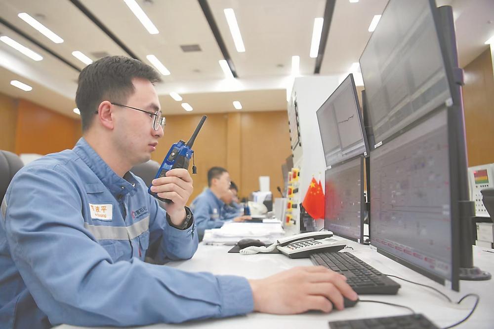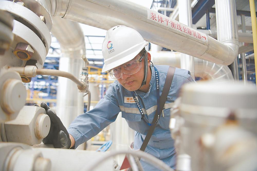 古雷石化工作人员在查看仪表数据。苏哲 摄