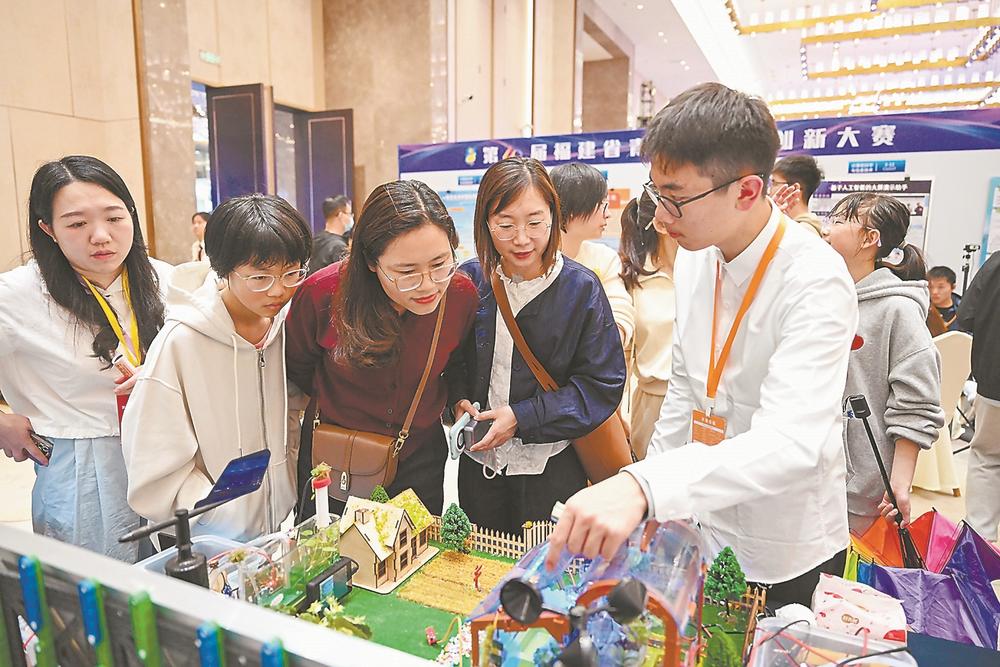 在本次大赛特邀专家、中国科学院院士谢华安看来,如今学生参赛作品的质量水平越来越高,“脑洞”越来越大,这说明青少年的创造性思维和想象力具有无穷潜力。“只要为孩子们提供一个可以发挥的平台,点燃他们对科技的热情,相信他们能在科创道路上健康成长。”话语间,谢华安深以为盼。(张哲昊 高林莎/文 江信恒/图)