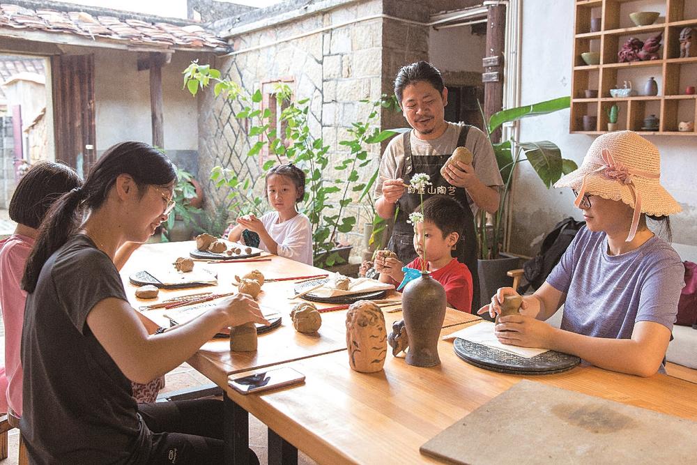 2018年,陈青山来到黄厝村,与同伴一起把一座古厝打造成为“山才手造工作室”,从此走上陶艺创作的路子。“刚来的时候,这些古厝很破。”陈青山说,政府部门通过以奖代补方式帮忙修整古厝,并提供3年免租期,吸引了不少分散在厦门各地的民间艺术家。“如今入驻黄厝村的艺术家工作室有30多个,涵盖了陶瓷、砖雕、漆画、雕塑等不同领域。”