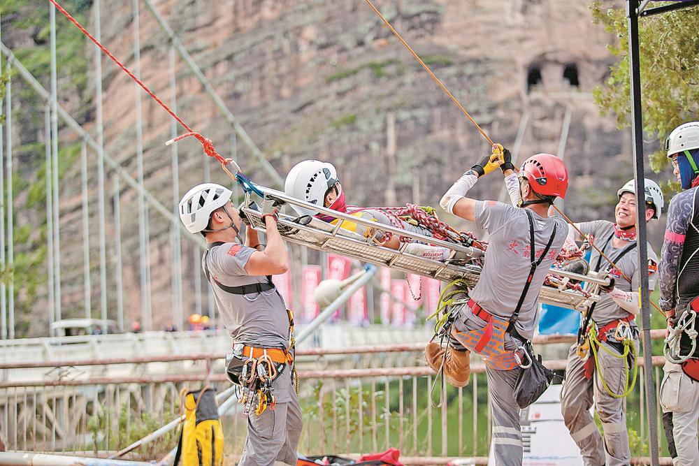 三明市火箭救援队参加2025三明·闯世界绳索与水域救援技术交流赛。