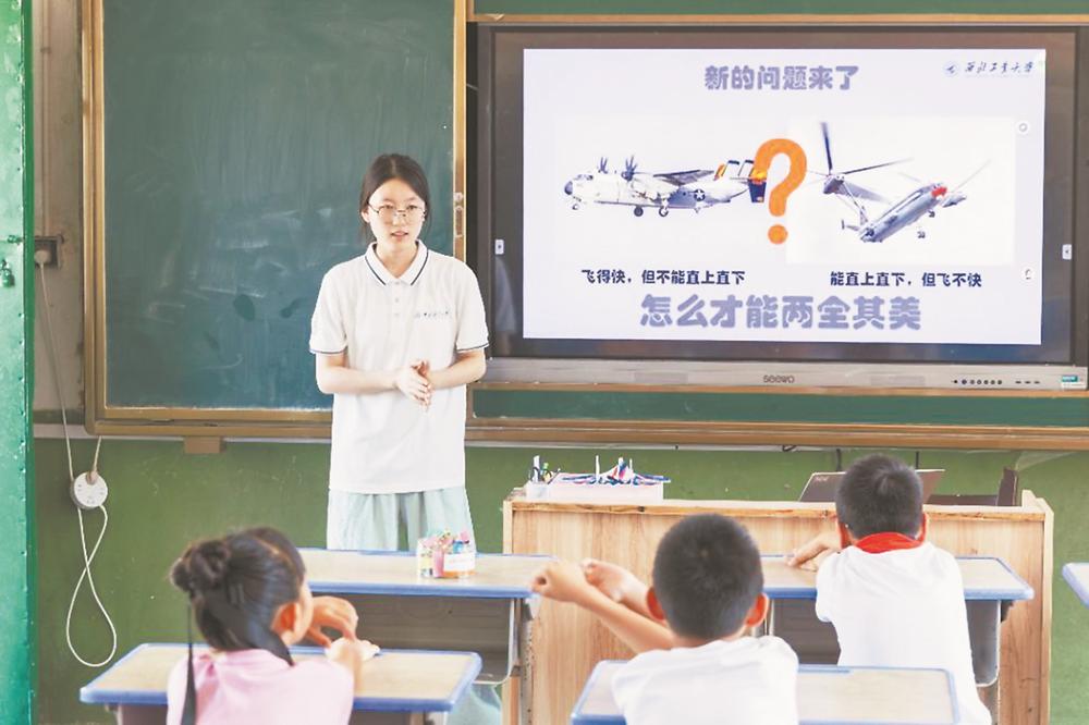 “乡村护苗学堂”也是西北工业大学大学生社会实践基地,学校的大学生志愿者在这里定期开展航空科普支教实践活动。“组织学生深入乡村开展航空科普,是落实立德树人根本任务、践行科技报国理念的重要实践。”西北工业大学航空学院团委书记田尧表示,在暑期支教活动中,青年学子实现了知识传递、能力提升和坚定信念的有机统一。