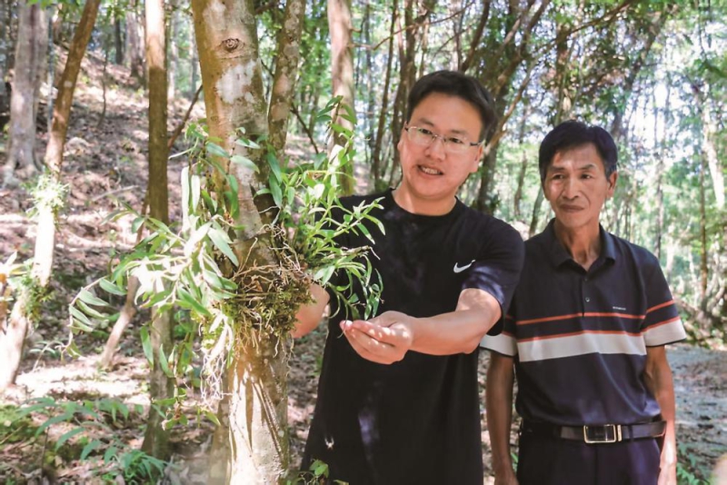 在磻溪镇蒋阳村的茂密森林里,高大的乔木遮天蔽日,几朵伞盖饱满的红菇悄然探出头来,一簇簇铁皮石斛紧紧附着树间,宛如一幅精心设计的立体画卷。而描绘这幅画卷的“魔术师”,正是惠民生态农林专业合作社的带头人——雷代华。