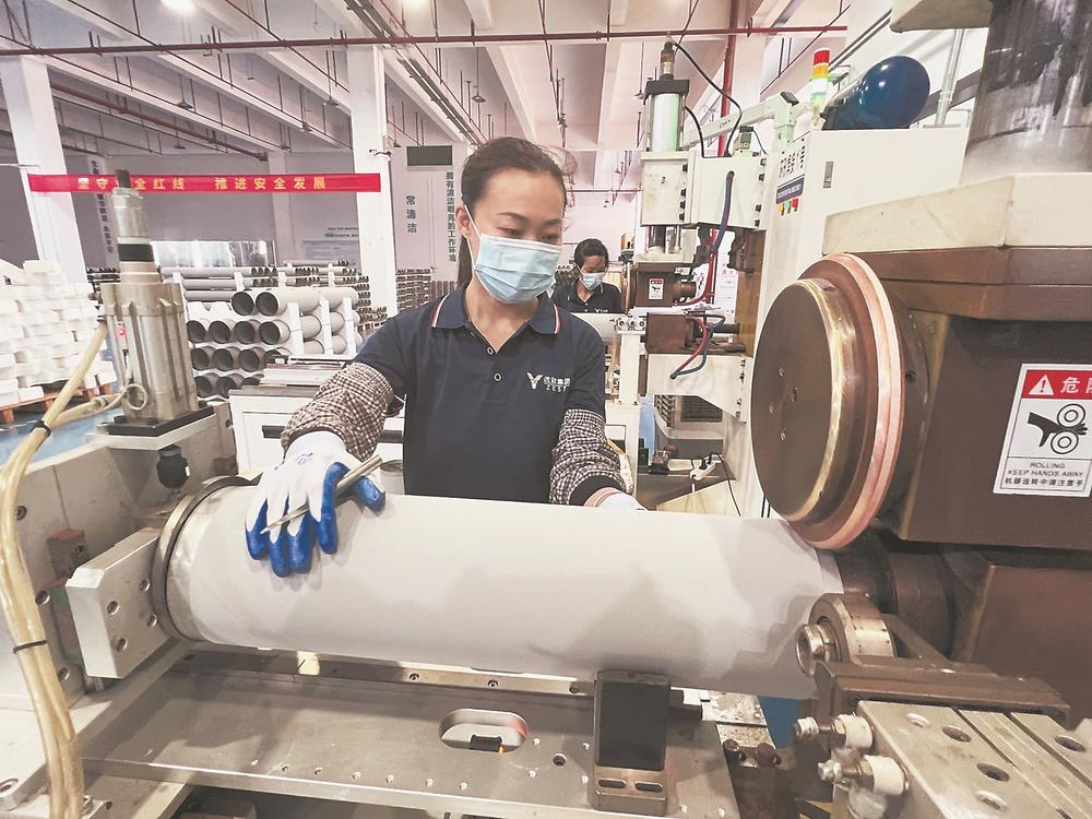 清源创新实验室合作企业——福建远致集团旗下远青新材料科技有限公司生产的超高温金属滤袋,可以耐受400℃以上高温烟气,有效弥补了传统化纤滤袋在超高温烟气环境应用的短板。记者 李珂 摄