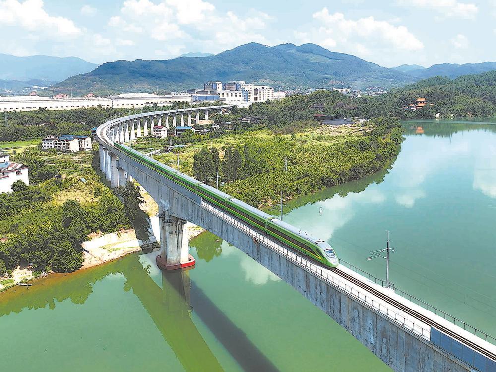 “绿巨人”复兴号列车疾驰在兴泉铁路沙县特大桥上。曹刚 摄