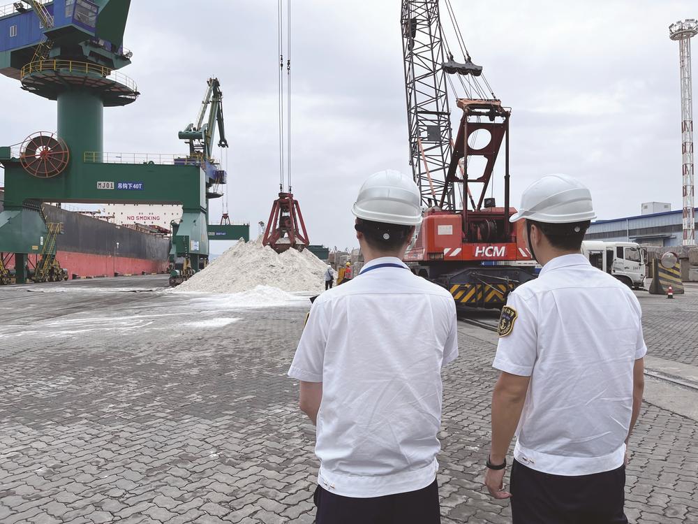 海事执法人员保障化工级重晶石粉出口顺利。(厦门海事局东渡海事处供图)