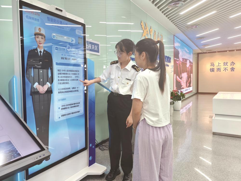 东渡海关关员指导企业办事人员使用AI数字人“鹭小关”。陈深刚 摄