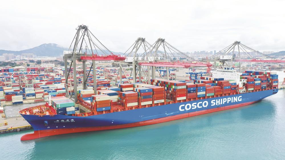 储能集装箱搭乘“中海黄海”轮前往美国洛杉矶。林梓健 摄