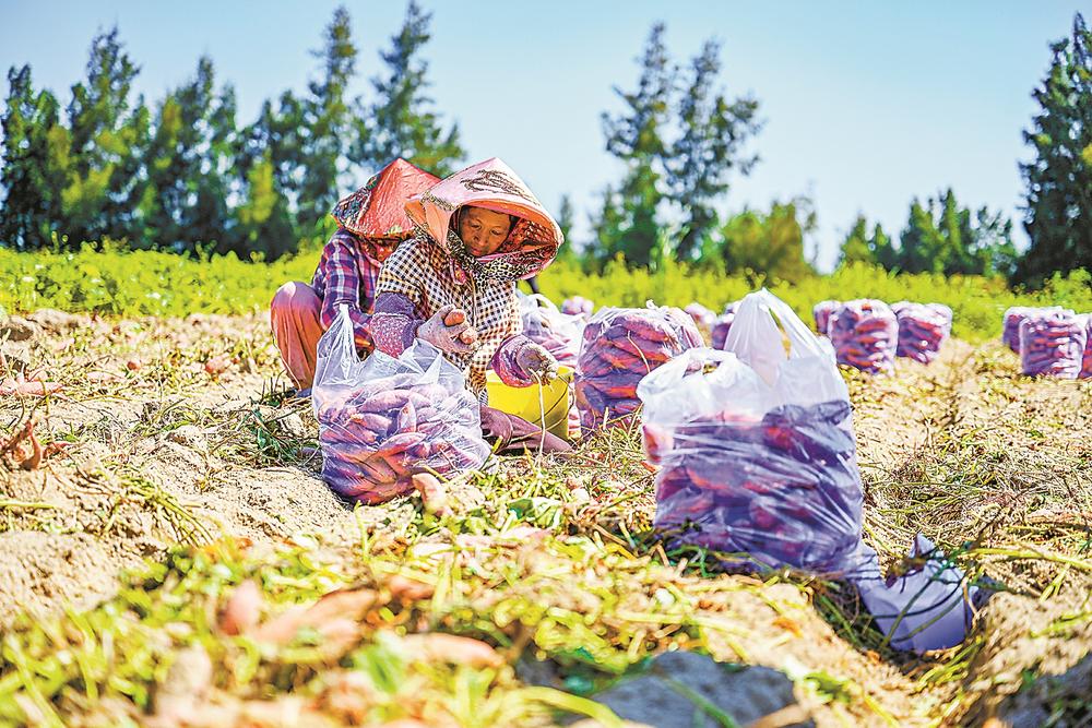 就在前不久,这里首次种植的百亩甘薯迎来丰收,亩产量约2500公斤,成为平潭探索盐碱地种植的又一新成果。更令人欣喜的是,甘薯亩产不低于普通地块,且富含钾等微量元素。