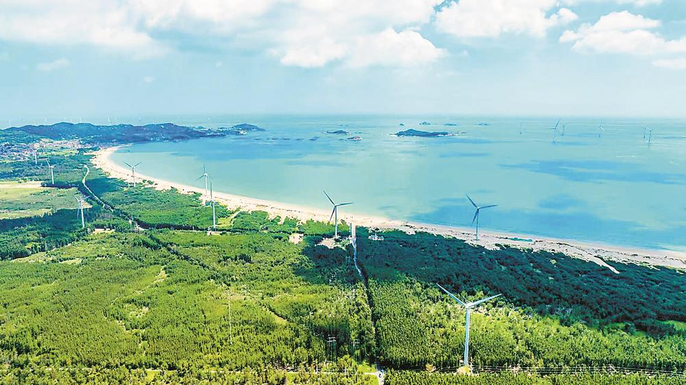 在平潭长江澳,郁郁葱葱的林海沿着海岸线延伸。通讯员 林君斌 摄