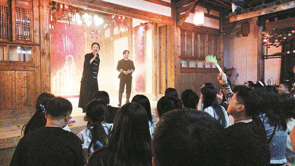 观众在“烟山旧”沉浸式剧场与工作人员互动。