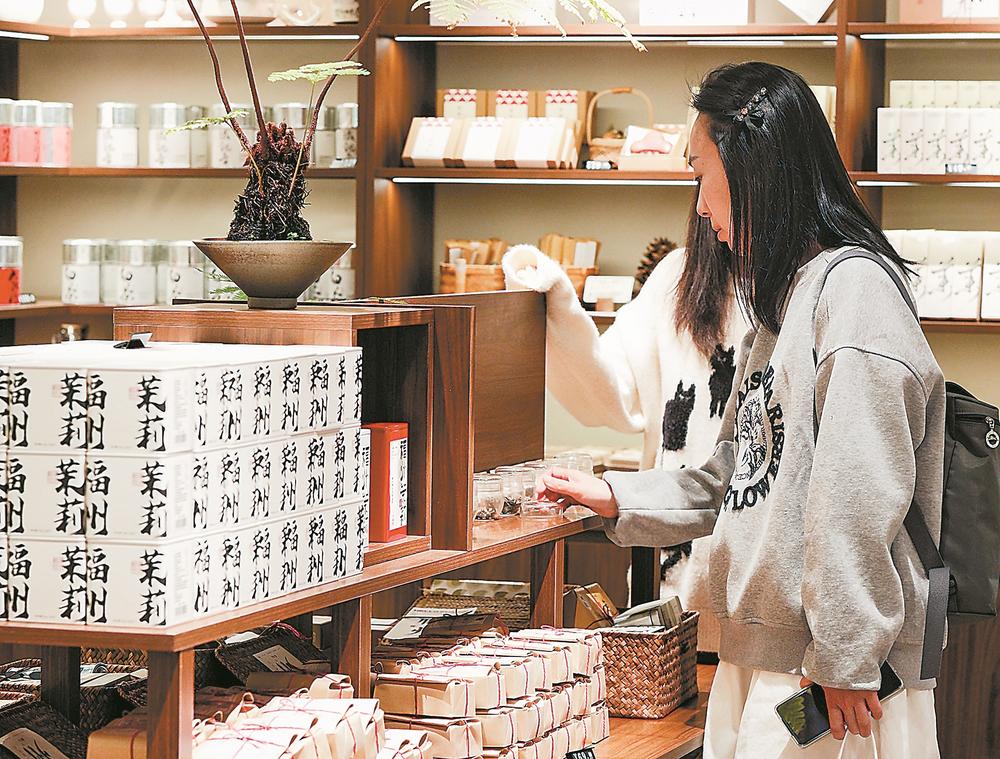 游客在福州一家快闪店挑选文创产品。