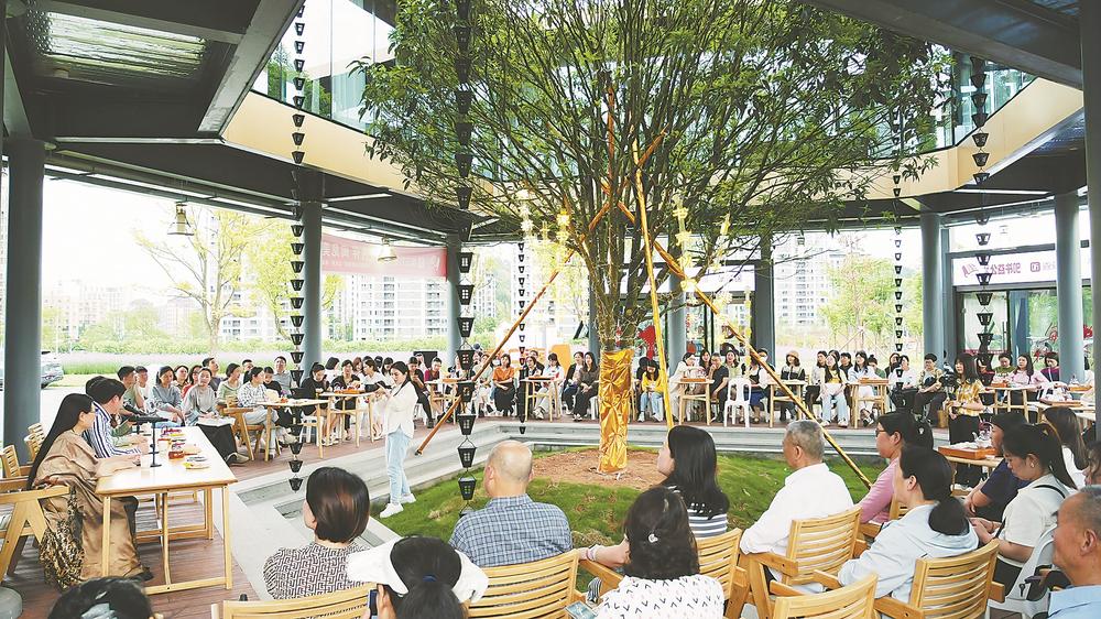 花海公益书吧开展的阅读分享会吸引众多市民参与。蔡沁妍 摄