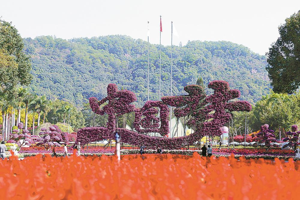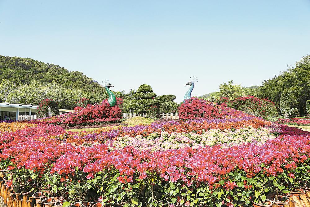 由多种三角梅组成的孔雀造型,成为花博会的“地标”。(资料图片)