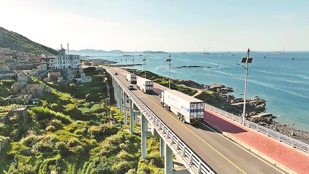 行驶在平潭沿海公路的物流车辆,它们是经济循环的“筋络”。(受访者供图)
