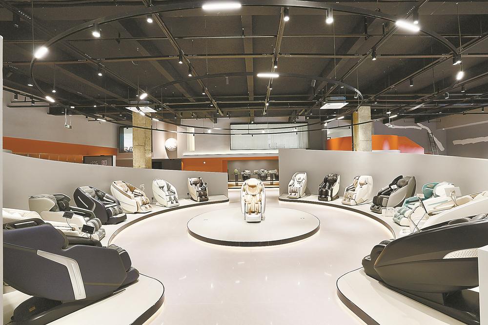 荣耀健康展厅内,各式按摩器具整齐陈列。李郁 摄