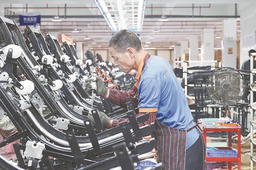 怡和生产线上,工人在组装按摩椅。陈雅芳 摄