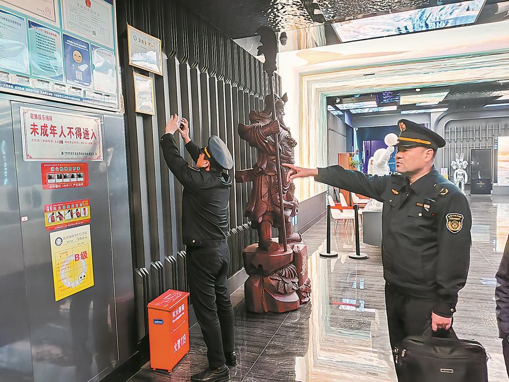 执法人员对同安区一家娱乐场所落实未成年人保护工作情况进行检查。