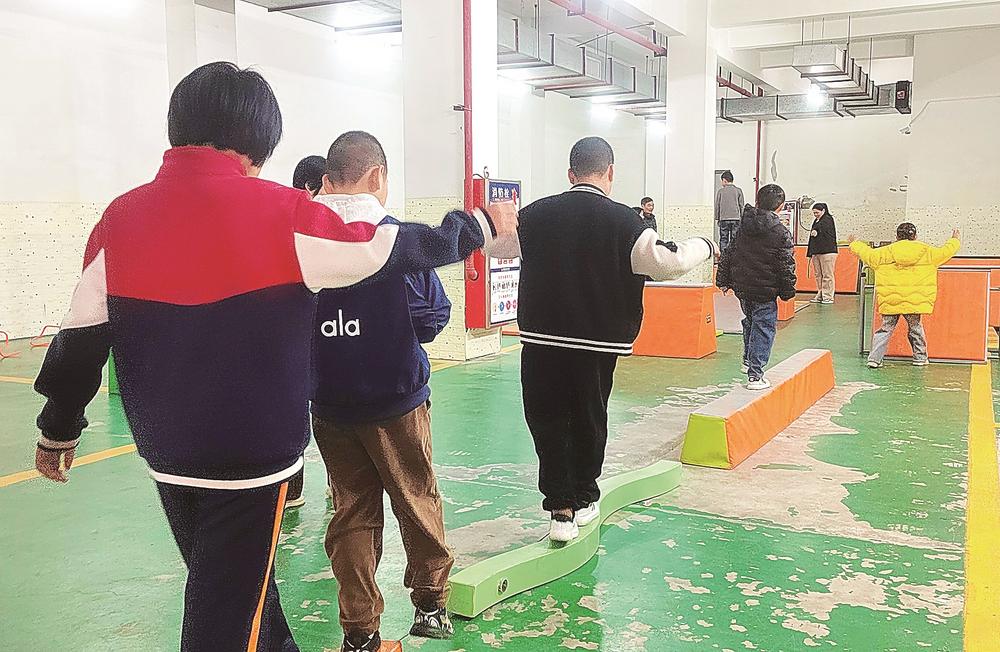 平衡木、爬行架、花样跳绳……为保障学生每日充足运动,让特殊孩子全天候享受运动乐趣,去年,龙岩市特殊教育学校累计投入超200万元改造设施,重修田径场、篮球场与室内场馆,更将停车场升级为室内风雨运动场。