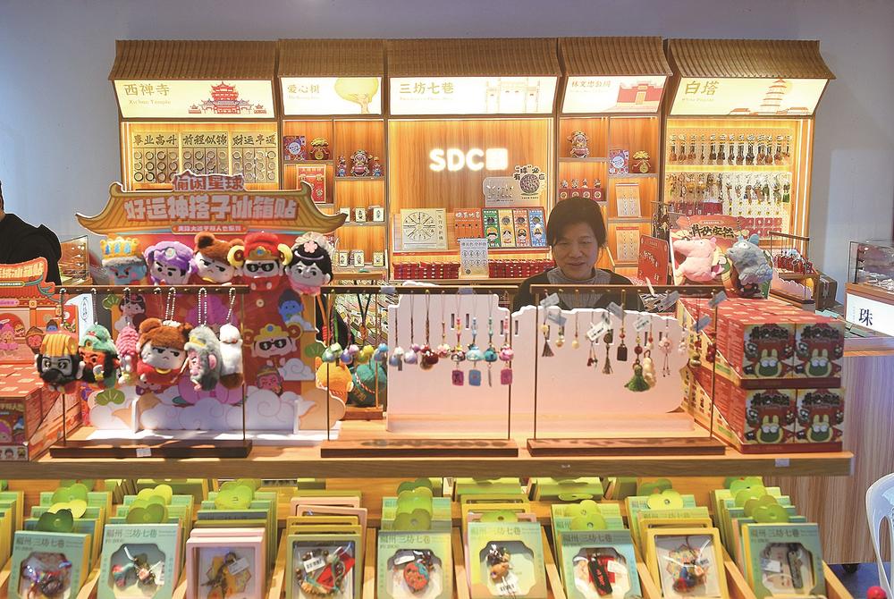 福州南后街沉浸式消费空间“国潮生活馆”里展示的一系列IP形象 新华社