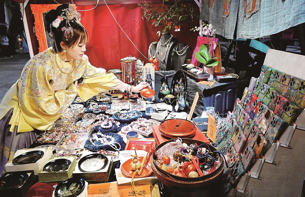 游客在福州上下杭历史文化街区参观选购福州脱胎漆器工艺品。新华社