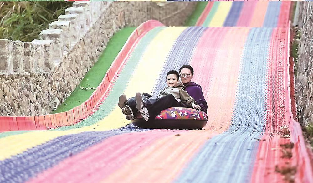 在溪源村,大人带着孩子嬉戏于山谷,共享天伦之乐。(资料图片)