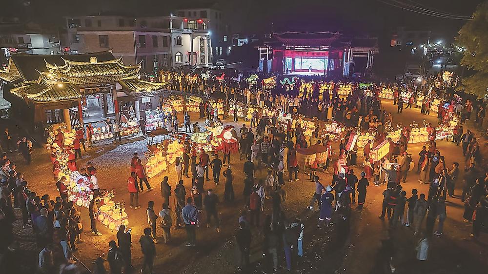 20日晚,连城县莒溪镇璧洲古村灯火璀璨,有着800年历史的客家非遗民俗——璧洲“二月二”游灯笼活动热闹启幕。通讯员 黄水林 见习记者 王志豪 摄